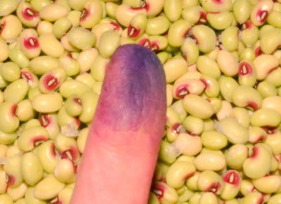 By the time I got around to making a picture, I had already shelled these. But, this gives you an idea of what to look for if you make a trip to the Farmer’s Market. Purple Hull really means what it says.